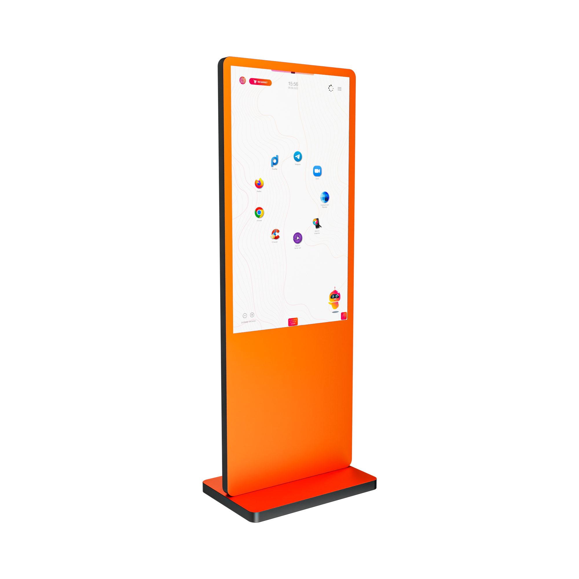 - Прочная и устойчивая конструкция — корпус изготовлен из прочных материалов, устойчивых к механическим воздействиям. Экран защищен прочным антивандальным стеклом, что гарантирует сохранность дисплея в условиях интенсивного использования в общественных местах.