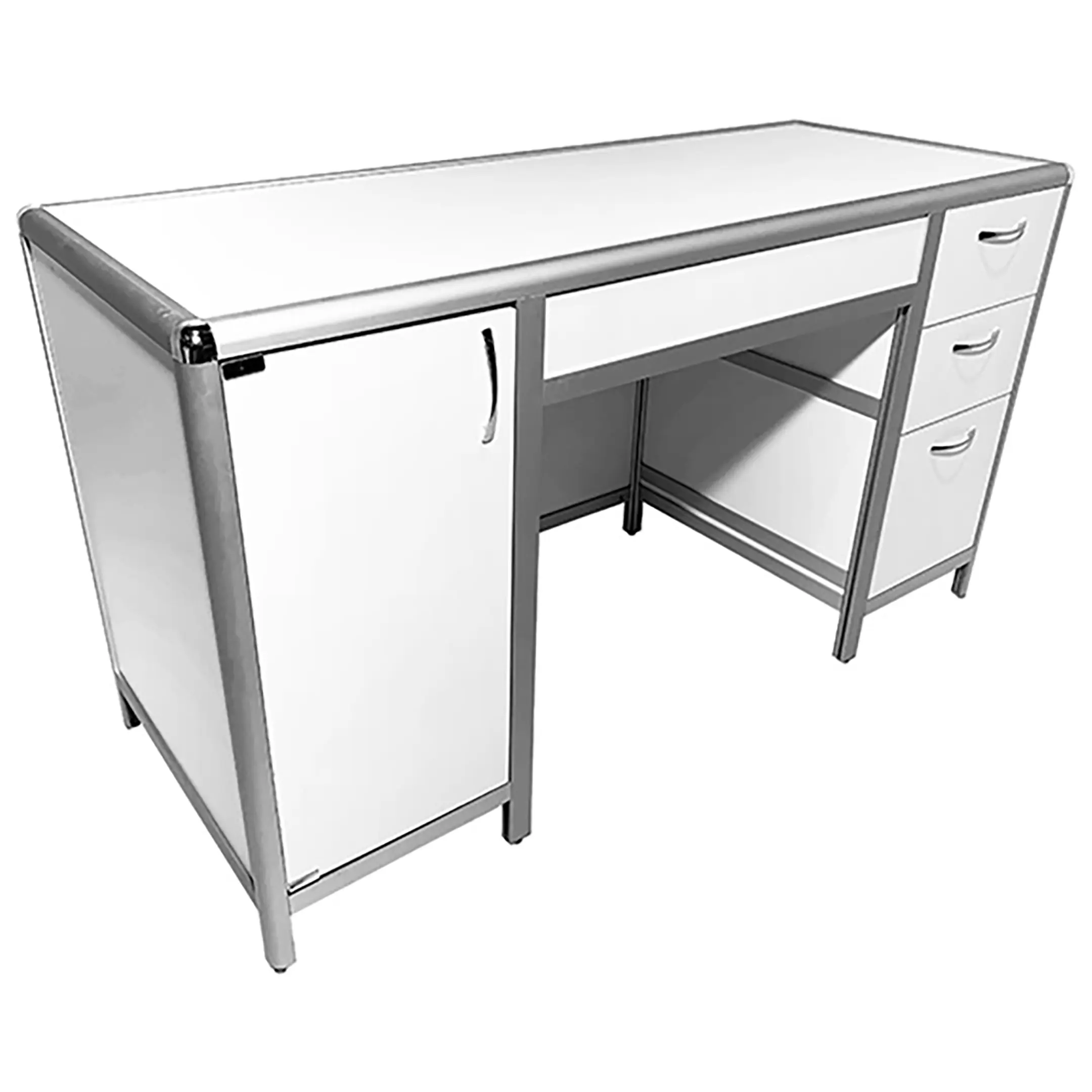 Стол лабораторный MED 10.008al (белый) — это идеальное решение для создания эффективного и организованного рабочего места сотрудников в лабораториях и медицинских учреждениях. Модель оснащена двумя боковыми тумбами: справа с тремя выдвижными ящиками, слева с распашной дверкой и полкой. Каркас выполнен из алюминиевого профиля, столешница из ЛДСП толщиной 16 мм.