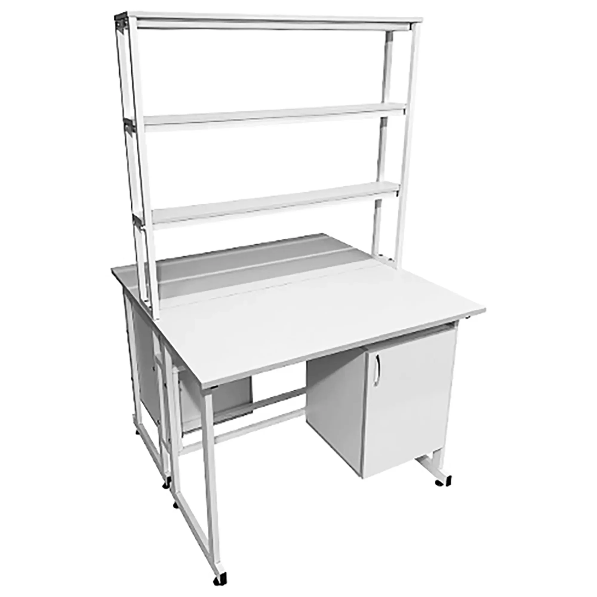 - Вместительная система хранения — две подвесные тумбы с распашными дверками и полками для хранения лабораторных принадлежностей.