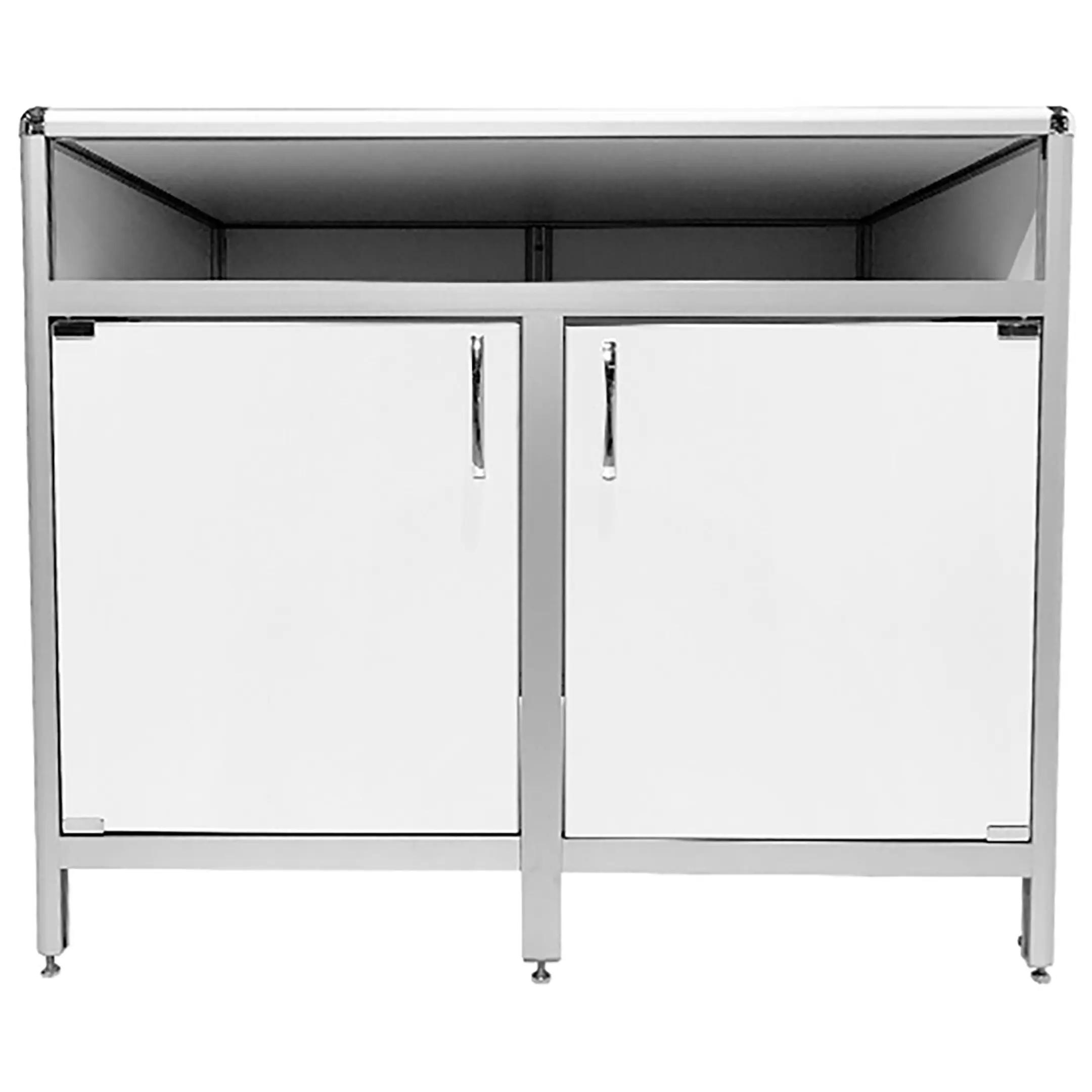 Стол-тумба лабораторная MED 12.009al (белый) — это функциональное решение для хранения лабораторного инвентаря, приборов и материалов в лабораториях и медицинских учреждениях. Модель оснащена вместительной нишей под столешницей (940х540х139 мм) и двумя тумбами с распашными дверками и полками внутри (полки 463х545 мм). Каркас выполнен из алюминиевого профиля, столешница из ЛДСП толщиной 16 мм.