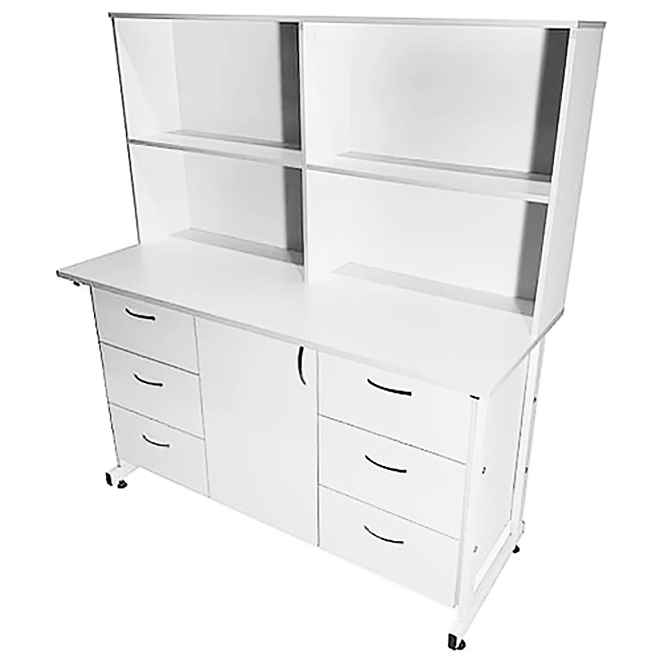 Стол-тумба лабораторная СТл 18.011 с надстройкой (белый) — это оптимальное решение для создания удобного рабочего места лаборанта, занятого химическими исследованиями и требующего эффективной системы хранения различных материалов. Модель оснащена шестью выдвижными ящиками, отделением с дверкой и полкой, а также надстройкой с четырьмя нишами. Каркас выполнен из стального профиля, столешница из ЛДСП толщиной 22 мм.