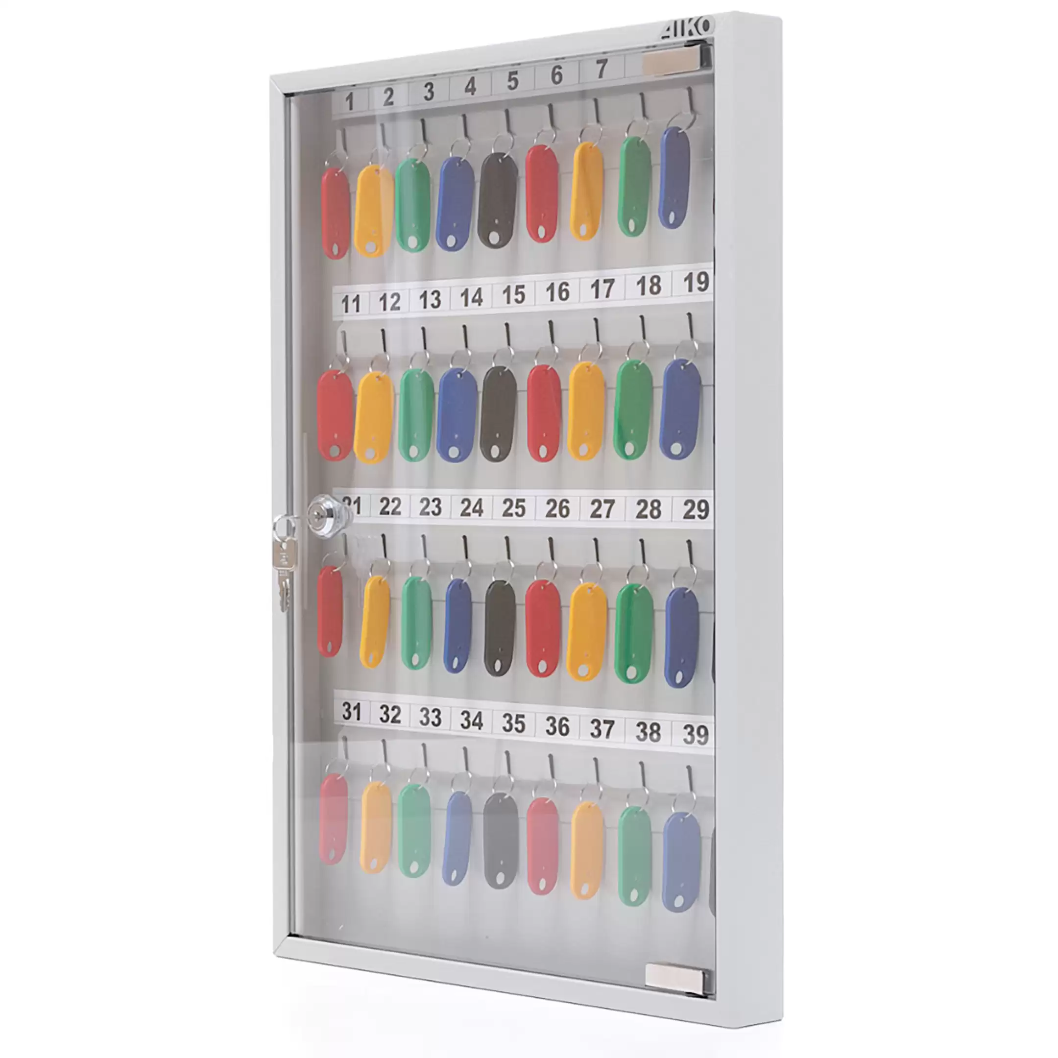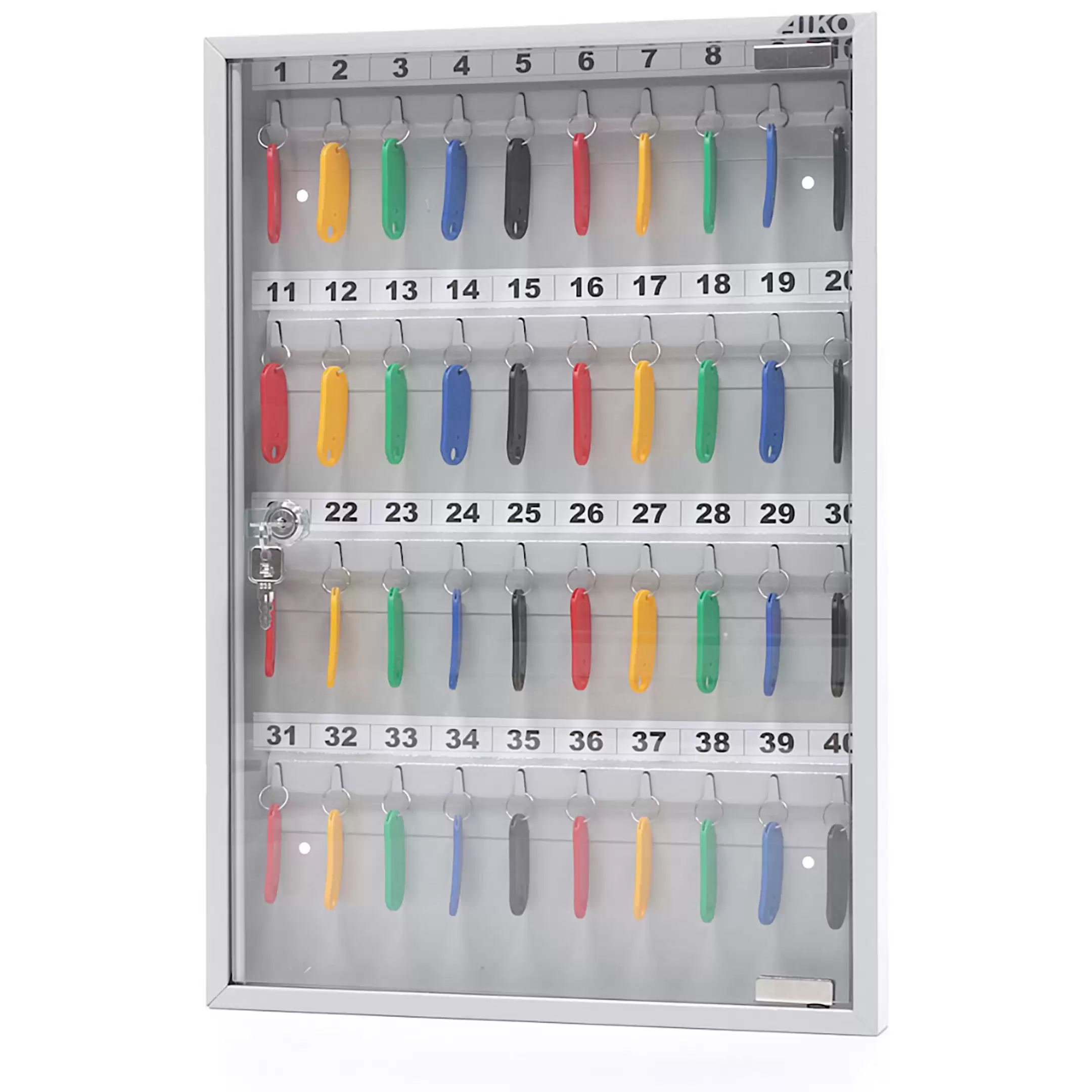 - Оптимальная вместимость для рабочих мест и точек доступа — система рассчитана на 40 ключей, что идеально подходит для организации хранения на стойке администратора, в диспетчерской, на посту охраны или в отделе, где требуется систематизировать и контролировать значительный набор ключей.
