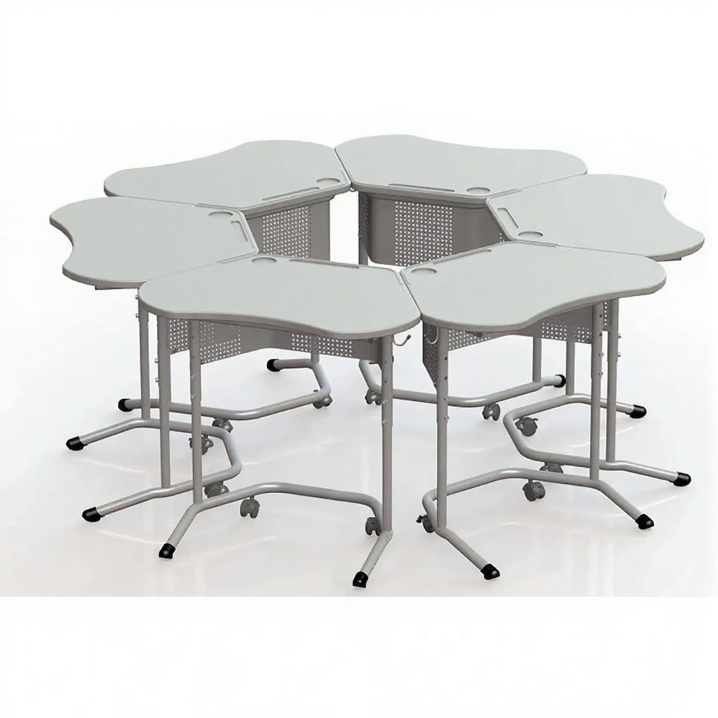 - Эргономичная трапециевидная форма — создает удобное пространство для групповой работы и взаимодействия между учащимися.