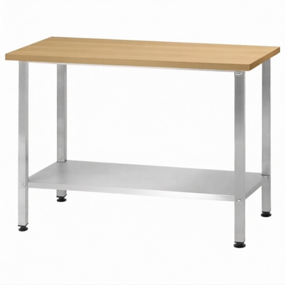 Стол кондитерский СПРн 860х1500х700 «Norma Inox» бук/40 (полка сплошная; ножка проф., тр. 40х40)