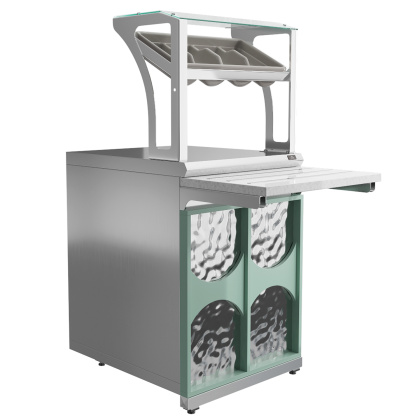 Прилавок для столовых приборов и подносов Luxstahl ПП (С)-600 Premium с направляющей из нержавеющей стали используется в составе линии раздачи на предприятиях торговли и общественного питания для хранения и раздачи столовых приборов, подносов, салфеток.