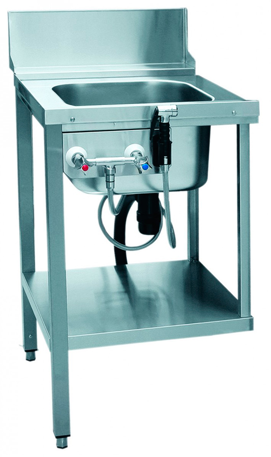 Стол предмоечный СПМП-6-1 используется вместе с купольными посудомоечными машинами серии МПК-700К. Предназначен для сортировки посуды и очистки от остатков пищи. Оснащен цельнотянутой ванной и душирующим устройством. Каркас стола усилен дополнительной нижней полкой и регулируемыми по высоте ножками.