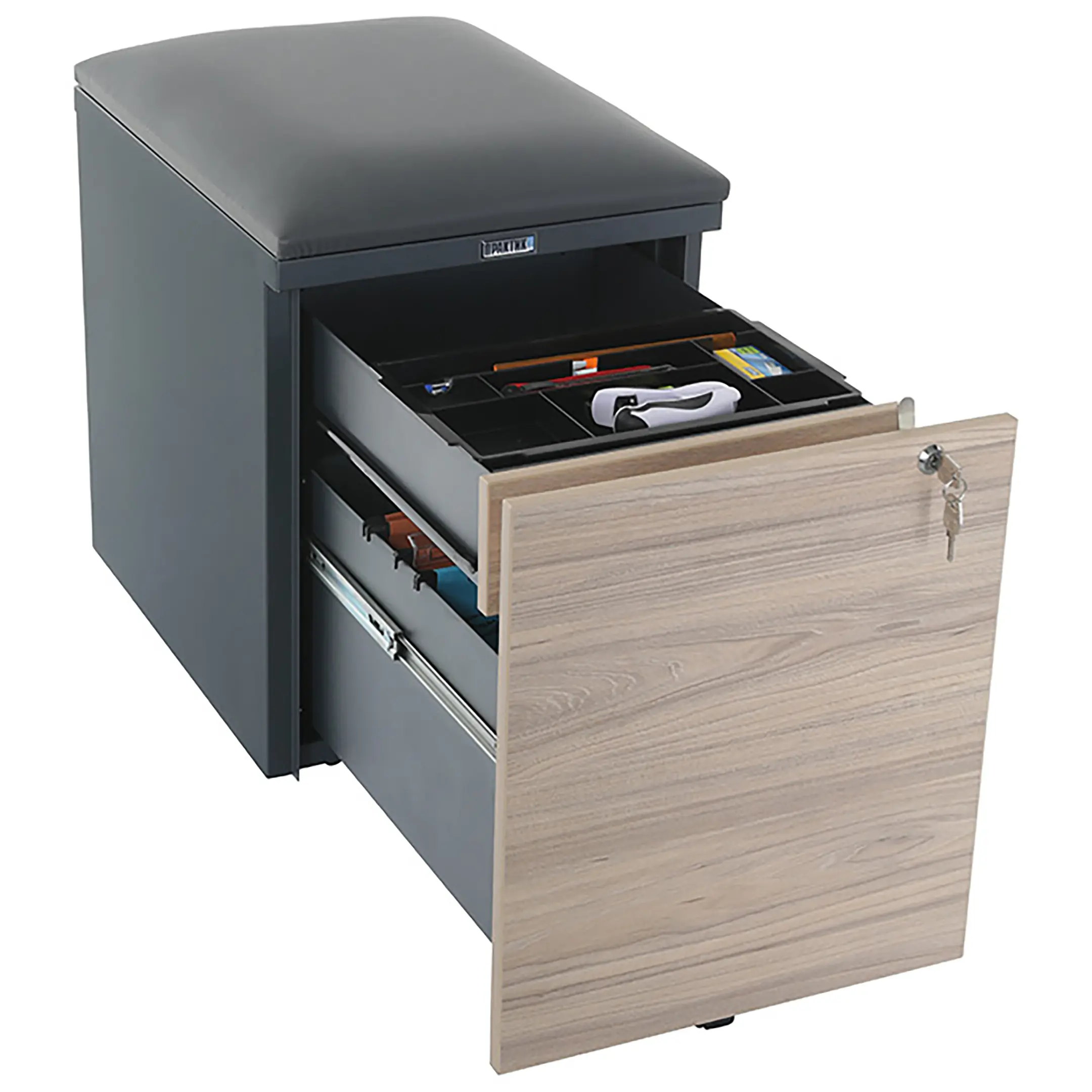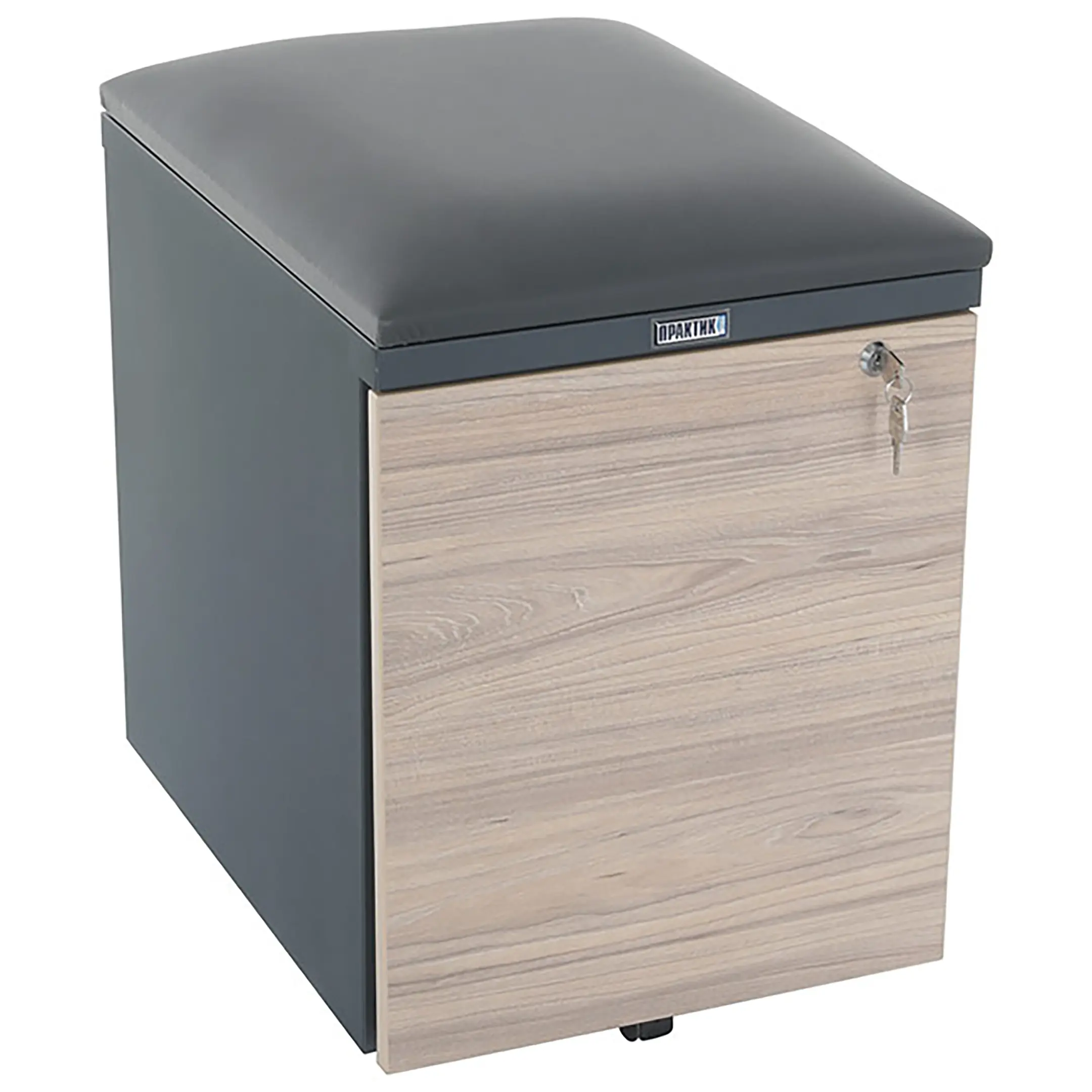 Тумба офисная с пуфом Практикант, 2 ящика (антрацит/вяз) Предназначены для хранения документации и канцелярских принадлежностей. Возможно использование в качестве мобильного места для сидения.