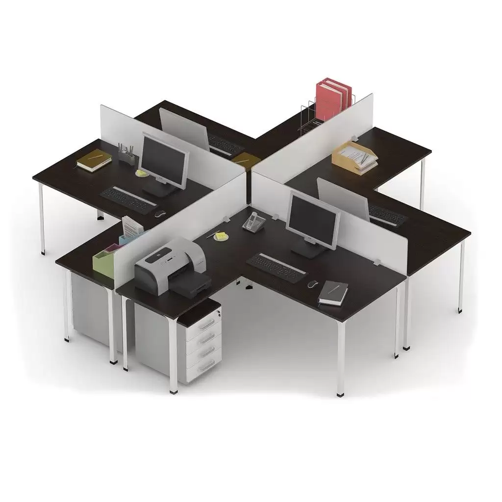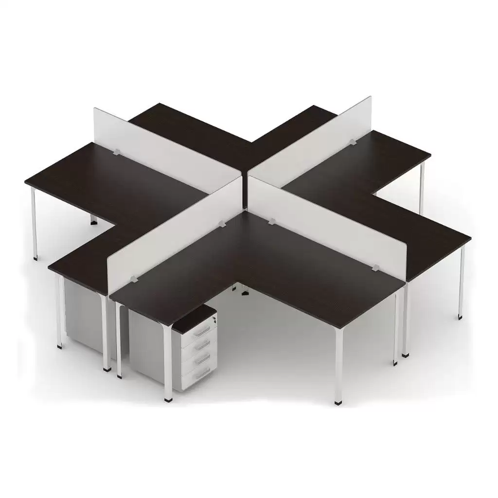 • формируется из 4 столов офисных, 4 столов-приставок и 4 экранов;