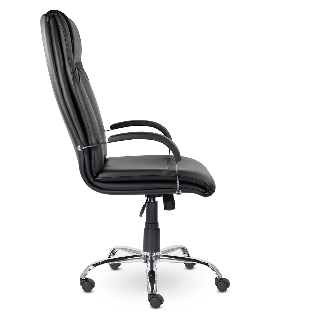 Кресло Артекс В хром — солидное офисное кресло руководителя с высокой спинкой, подголовником и стильным хромированным основанием. Модель сочетает комфорт, презентабельный внешний вид и надёжную конструкцию, что делает её отличным решением для кабинетов, переговорных и рабочих пространств.