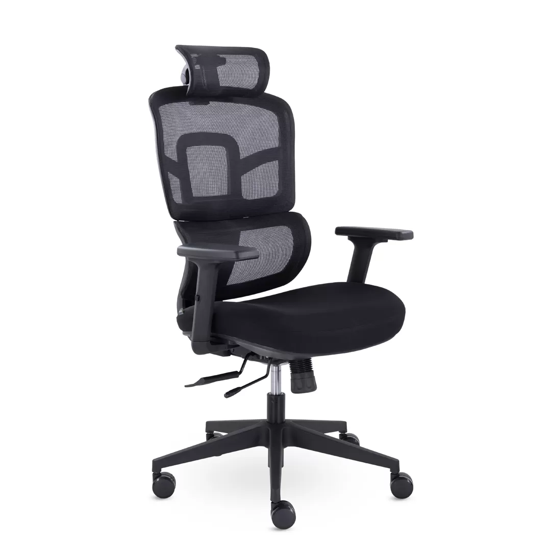 - Современный дизайн — черный каркас и лаконичные линии создают аккуратный, стильный и профессиональный внешний вид кресла.