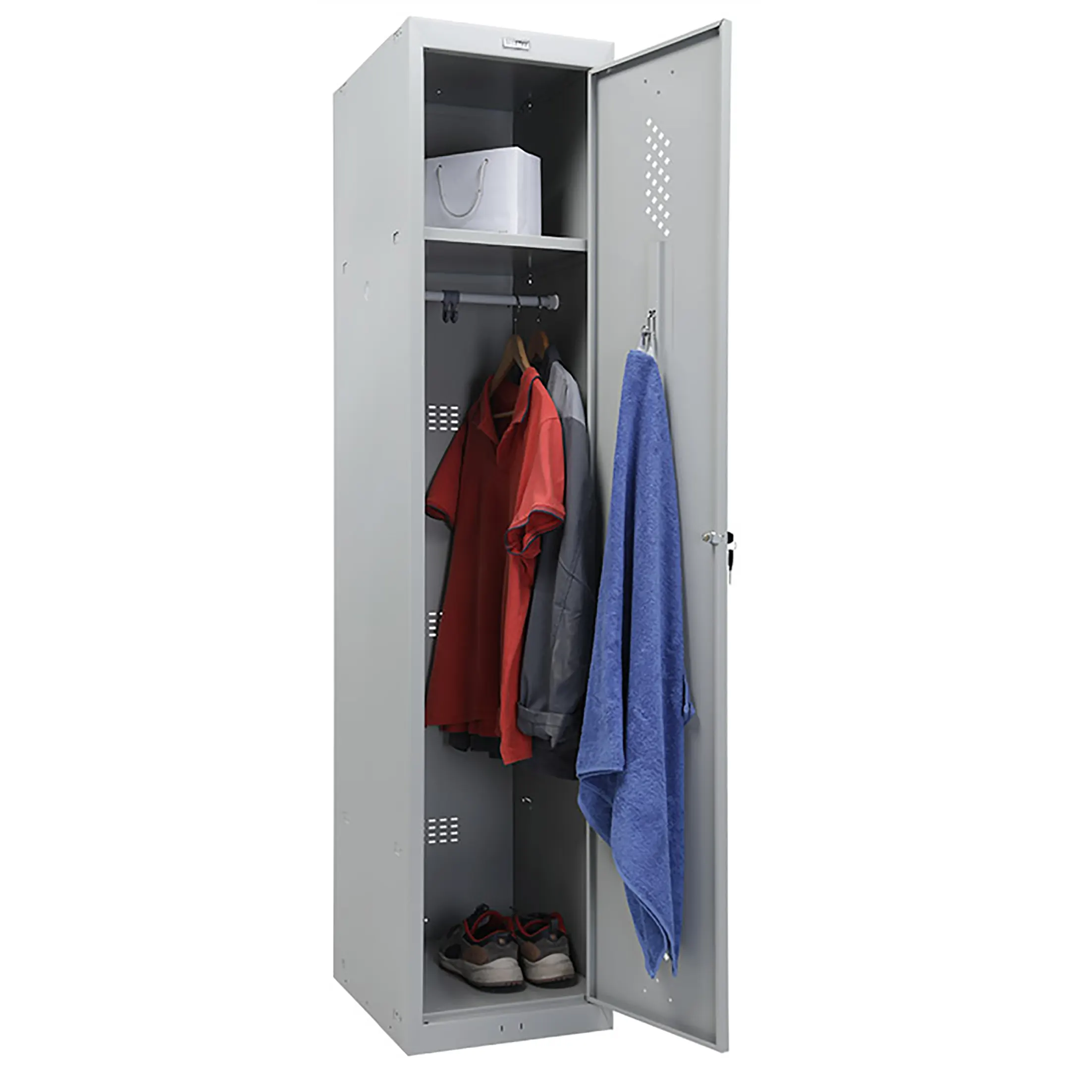 Шкаф для раздевалки ML 11-40 предназначен для хранения одежды в производственных, спортивных и других помещениях, хоз.инвентаря, а также для организации камер хранения.