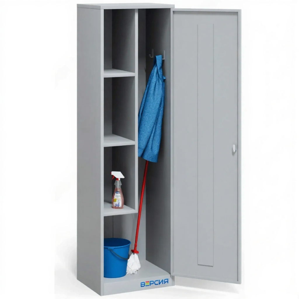 - Универсальность применения в различных сферах — модель подходит для использования в образовательных учреждениях, медицинских кабинетах, офисах, небольших производствах и жилых помещениях, везде, где требуется организованное хранение хозяйственных принадлежностей.