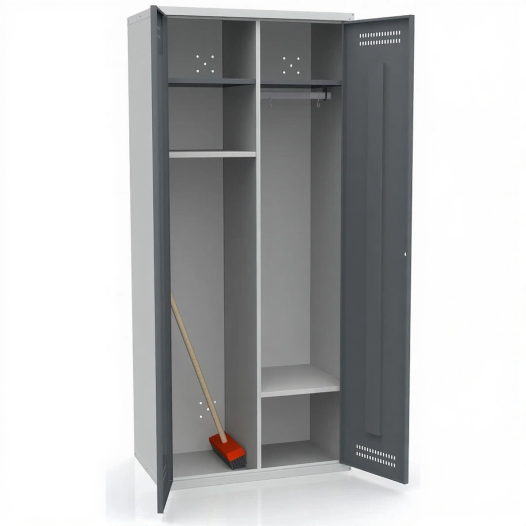 - Универсальность и практичность применения — модель подходит для использования в самых разных сферах: от образовательных и медицинских учреждений до офисных центров и производственных предприятий, везде, где требуется организованное хранение хозяйственных принадлежностей.