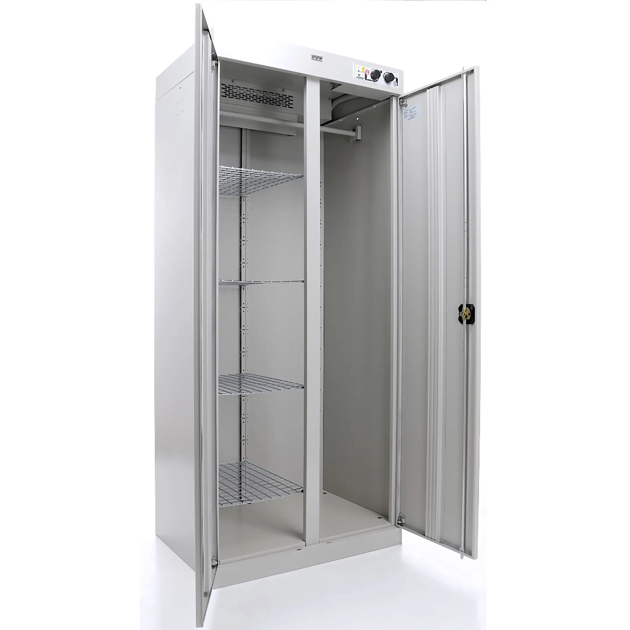 - Высокая производительность и вместимость — шкаф рассчитан на загрузку значительных объемов одежды и обуви за один цикл, что позволяет эффективно обслуживать большие коллективы на предприятиях, в спортивных комплексах или медицинских стационарах.