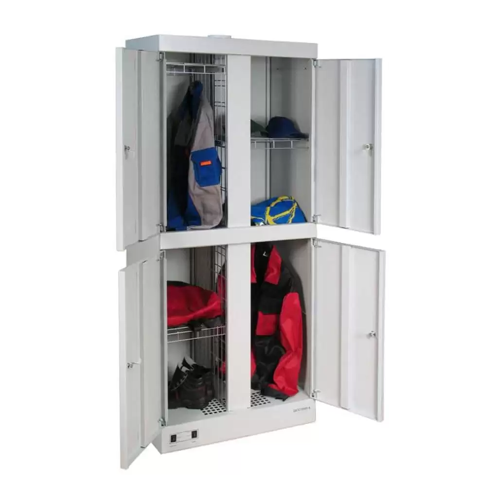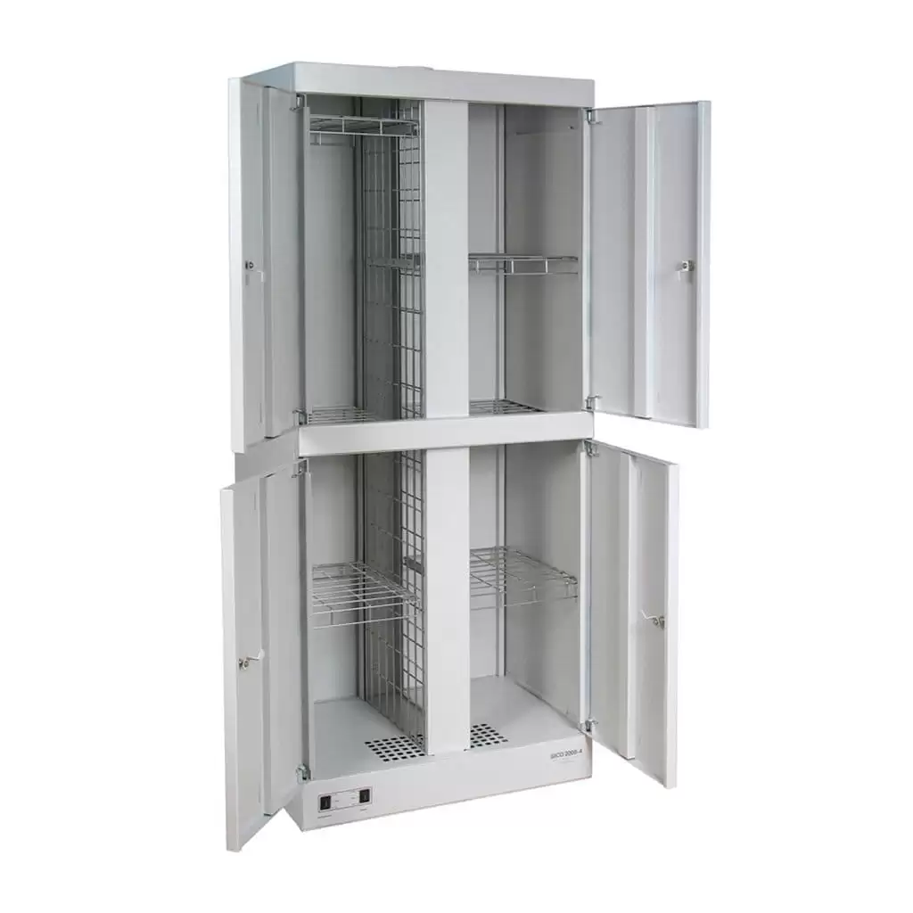 Шкаф сушильный ШСО-2000-4 — это производительное и надежное оборудование для эффективной сушки рабочей и спортивной одежды, спецодежды, обуви, белья и инвентаря на предприятиях, в медицинских, спортивных учреждениях, гостиницах и учебных заведениях. Модель обеспечивает быструю, равномерную сушку благодаря циркуляции теплого воздуха, способствуя устранению влаги, запахов и поддержанию гигиены.
