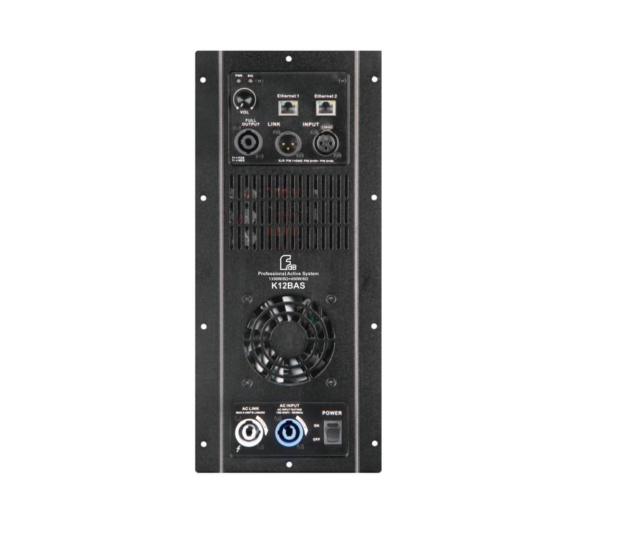 Встроенный двухканальный цифровой усилитель K12BAS способен дополнительно усилить пассивную колонну K3. Как и большинство активных акустических систем FDB Audio, K12BAS имеет поддержку DSP, с помощью которого можно гибко отстроить как сабвуфер, так и сателлит. Доступные параметры настроек: входной 31-секционный PEQ, выходной 10-секционный PEQ, задержка ввода/вывода от 0 до 25 мс, независимый полосовой фильтр, фильтры высоких и низких частот, независимое ограничение давления, шумоподавитель, компрессор.